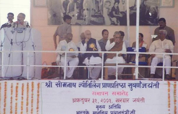 नरेन्द्र मोदी ने 31 अक्टूबर 2001 को आयोजित उस कार्यक्रम में भाग लिया था, जो 1951 में तत्कालीन राष्ट्रपति राजेंद्र प्रसाद की उपस्थिति में पुनर्निर्मित सोमनाथ मंदिर के पुन: खुलने के 50 वर्ष पूरे होने के उपलक्ष्य में आयोजित किया गया था। इस अवसर पर मंदिर के पुनर्निर्माण में सरदार वल्लभभाई पटेल, के. एम. मुंशी और कई अन्य लोगों द्वारा निभाई गई महत्वपूर्ण भूमिका पर प्रकाश डाला गया था। यह कार्यक्रम सरदार वल्लभभाई पटेल की 125वीं जयंती के अवसर पर आयोजित हुआ था और इसमें तत्कालीन प्रधानमंत्री अटल बिहारी वाजपेयी, तत्कालीन गृह मंत्री लालकृष्ण आडवाणी और अन्य गणमान्य व्यक्तियों ने भाग लिया था।